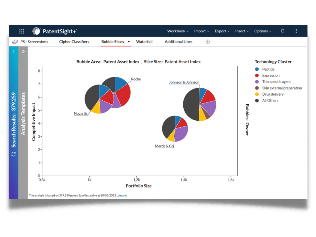 Coming Soon: LexisNexis® PatentSight+ October 18, 2023 Make High-Value Strategic Decisions with LexisNexis® PatentSight+ PatentSight+ is designed to revolutionize the way you make high-value strategic decisions. Before its official launch in November, we want to provide you with an early glimpse. With PatentSight+, our objective is to elevate your experience in three pivotal areas, all with the aim of enhancing your decision-making to unprecedented levels: Data Quality and Coverage: Access richer insights by incorporating new data types with rigorous quality checks, including SEPs declaration data from IPlytics. Actionable Insights: Leverage AI-driven analytical capabilities from Cipher to accelerate the depth and speed of insights. Impactful Visualizations and Communication Tools: Optimize workflows, enhance efficiency, and elevate your IP awareness and storytelling with new powerful visualization tools. PatentSight+ will launch in November, and from that point forward, you will receive ongoing updates, including the expansion of new features and continuous improvements. We are committed to keeping you at the forefront of innovation. As we move forward, you can anticipate new data sets, enhanced analytical capabilities, improved workflows, advanced visualization tools, and enhanced communication features becoming available. As a PatentSight customer, you will get complimentary access to many additional PatentSight+ features for a defined period to allow you to experience the benefit. In addition, we will offer optional add-on modules within PatentSight+, such as AI Technology Classification, powered by Cipher. As of November 2023 Litigation Data will be added Understand litigation profiles of competitors and the strength of their portfolios. Access US data and an initial European offering containing EPO documents, the Netherlands, and the Court of European Justice. Improve your understanding of your portfolio risk profile. Standard Essential Patent Declaration Data powered by IPlytics will be available Enhance transparency in SEP negotiations and licensing. Sheet Navigator will ease your workbook management Save time working more effectively with the new sheet navigator that helps you to navigate and manage the sheets in your workbooks more easily. Quick Insights will reduce time and clicks to insights Expedite your path to valuable insights with an intuitive guided experience at the start screen, enabling you to reach your analysis faster. Simply input a technology term or a company name into the search field, and Quick Insights will present readily populated sheets for your selection. This feature is especially beneficial for new or occasional users. Coming in 2024 More High-Quality Data Get richer insights by incorporating new data types with rigorous quality checks: Expanding patent coverage with an additional 14 million documents and data, e.g., from India Expanding litigation coverage and documents, e.g., from China Actionable Insights Increase depth and speed to insights through AI-driven powerful analytical capabilities: AI classifier builder, powered by Cipher, directly embedded into PatentSight+ Document-level search and view Litigation and prosecution analytics SEP analytics Visualizations and Communications Optimize workflows, boost efficiency, and elevate IP awareness and storytelling through powerful visualization tools: Further enhancements to chart types Efficiency gains in your workbook management Try out some new features of PatentSight+ already today New Chart Types Enhance data storytelling with additional visualization options: Use bubble charts to slice bubbles as pie charts based on a selected dimension. Visualize changes over time with waterfall data visualizations. Display up to two attributes on a single line chart. Export to PowerPoint Function Share findings with colleagues and stakeholders by exporting static images of the charts and data from your workbooks into PowerPoint presentations with ease. AI Technology Classification (PatentSight+ optional Add-On) Gain a more precise, up-to-date view of your technology area. Make high-value strategic decisions regarding your patent portfolio. Embark on a journey to empower your strategic decisions regarding your patent portfolio with PatentSight+. Your success is our priority, and we encourage you to contact your dedicated Customer Success Manager for any questions about the features of PatentSight+ or the platform in general. Try out the new features of PatentSight+ today TRY NOW Was this post helpful? Let us know if you liked the post. That’s the only way we can improve. Yes No