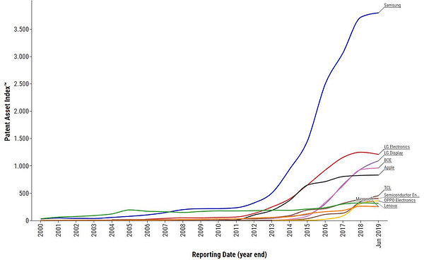 Apart from the usual suspects (smartphone companies), that are expected to be active in this field, we also see some fairly unfamiliar names, of companies that may not be internationally recognized. But they have, nevertheless, been developing strong portfolios of foldable display patents; like BOE, TCL or OPPO. Interestingly enough, BOE has reportedly replaced LG as a supplier of displays to Huawei, who recently launched their first foray into the world of foldable smartphones with their new model, Huawei Mate X.
