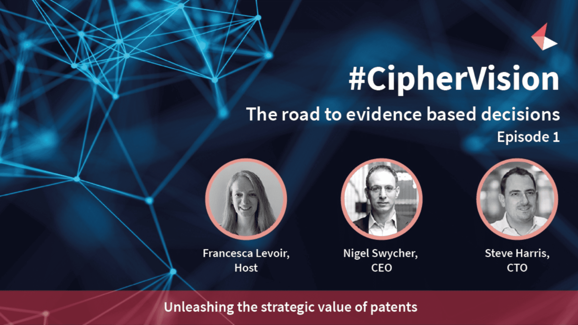 Steve: My focus is more on what we can achieve with technology rather than the technology itself. I’m not really driven by the technology for its own sake. It’s about what problems we can solve with it, and how we can make things better generally.Nigel: It’s kind of strange 30 years later to be talking about those sectors being ’emerging’. But there it was, I grew up as intangibles became more important to the economy. And that led me to a time of frustration that there wasn’t more evidence for the critical commercial strategic decisions that needed to be made.Steve: I had almost no knowledge about patents at all. But when I came into it, as an outsider, I did quite a lot of research into what was going on in the industry. Generally, you could see there was a huge trend in the importance of IP intangible assets, but really specifically patents.Francesca: Nigel, you talked about being frustrated. But there is a lot of patent data out there. So where were your frustrations coming from from a data standpoint?Nigel: I think it’s like a hierarchy of needs. At the bottom of the stack is data, in the middle of the stack is analysis, at the top of the stack is insight. And as Steve said, having data isn’t the answer it’s the problem. If you’re going to make a decision, then you need to have insight.Francesca: Do you think you’d be using machine learning to come to evidence based decisions when you first started Cipher?Nigel: So we lawyers don’t spend our time thinking about data science. And that turned out to be one of the problems.Francesca: We seem to talk a lot about some really messy data in patents. Was this your experience? And did you give Steve a heads up about this?Nigel: I mean, the fact that ownership was a complete mystery to the patent world until Cipher.The fact that there aren’t any standardized formats, the fact that 20% of records at national patent offices are wrong because people choose not to record that they’re the owner – it’s not like stocks and shares or houses where there are very sophisticated, mandatory standards about change of ownership.Francesca: I’d like to return now to how that leads us to evidence based decisions. Steve, you talked about technology enabling things. What do you see the future for IP?