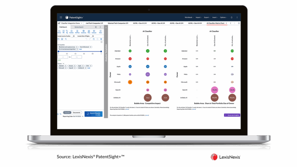 Home > IP Solutions > IP Analytics & Intelligence > LexisNexis® Classification > Custom Taxonomy Patent Custom Taxonomy See the world through your own technology lens. Find Out More How a custom taxonomy helps you Using your view of the key technologies, LexisNexis® Classification can design and build your patent custom taxonomy. No more manual reviewing and tagging of patents because we provide the ability to automatically view competitors or the entire patent landscape through the same technology lens. Talk to an expert Just no other tool than LexisNexis Classification Our issue was how to fit other companies’ portfolios into that same framework that we use and there’s just no other tool other than Classification that can do that. Bob PechmanChief Intellectual Property CounselSeagate Technology Your Custom Patent Taxonomy Design and Build Classification builds your patent taxonomy using classifiers in the framework that maps to your view of the technology landscape. It uses positive and negative training data to build Classifiers with independently-verified accuracy. Once you have your classifiers you can quickly run reports to understand any key competitor changes or new entrants or spot key technology trends. You can optimise your portfolio manage your patent budget and explore cross-licensing opportunities or portfolio monetisation options. A smooth and straightforward process The process was pretty straightforward and even simpler with the more useful data you can provide. We’ve also scoped other classifiers where we started completely from scratch, where the LexisNexis Classification had to do more work up front, but even that process went smoothly. Bob PechmanChief Intellectual Property CounselSeagate Technology The benefit of having your own custom patent taxonomy Turn Custom Taxonomies into Strategic Insights Bring your business-defined patent categories into PatentSight+ to see innovation through your own lens. Custom taxonomies created in Classification can be applied across global patent data in PatentSight+, so you can analyse, benchmark, and compare portfolios in ways that reflect your unique strategy, not just standard codes. Sector Taxonomies What could your custom patent taxonomy look like? Here are some sector taxonomies created with the Classification platform. Aerospace and Defense Technologies include air turbine starters; electromagnetics; drone flight management systems; head-mounted displays (HMDs); and virtual cockpits. Read More Med-tech and Life Sciences Strategic insight for the next generation of diagnosis and treatment for data-driven healthcare. Read More Automotive The industry standard for understanding the future of electric cars and the wider automotive industry. Read More Related Resources ML4 Patents Webinar: Universal Technology Taxonomy This webinar was originally presented under the Cipher brand. Cipher is now LexisNexis® Classification. Watch the full replay Free UTT report View a company screening of Semiconductors. Download the report A Global View of Innovation An overview of how the world’s inventions are broken down. Watch the video